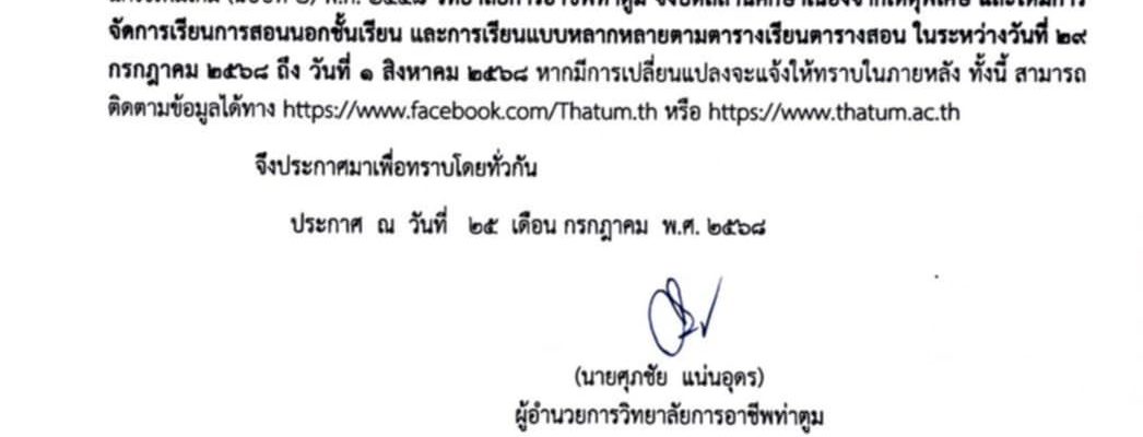 ข่าวประกาศ ประกาศปิดสถานศึกษาเนื่องจากเหตุจำเป็น ประกาศปิดสถานศึกษาเนื่องจากเหตุจำเป็น โด… admin กรกฎาคม 28, 2025
