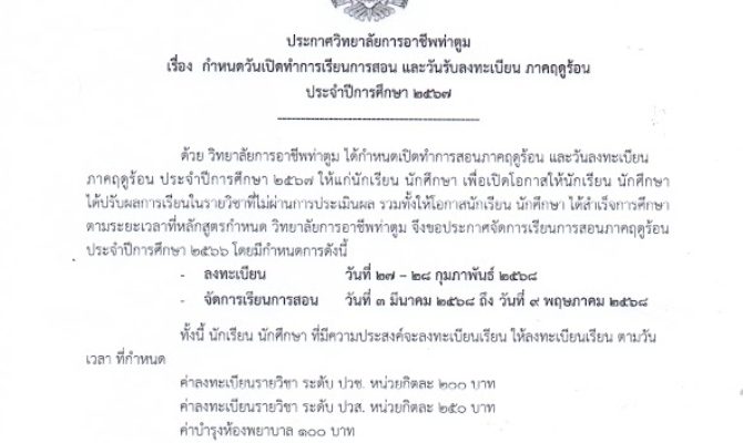 ข่าวประกาศ กำหนดวันเปิดทำการสอน และวันรับลงทะเบียนภาคฤดูร้อน ประจำปีการศึกษา 2567 admin กุมภาพันธ์ 25, 2025