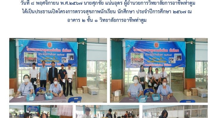 ข่าวประชาสัมพันธ์ โครงการตรวจสุขภาพนักเรียน นักศึกษา วันที่ 7 พ.ย.67 admin@thatum1 พฤศจิกายน 11, 2024