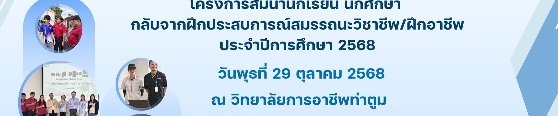 ข่าวประชาสัมพันธ์ โครงการสัมนานักเรียน นักศึกษา กลับจากฝึกประสบการณ์สมรรถนะวิชาชีพ/ฝึกอาชีพ ประจำปีการศึกษา 2568 admin@thatum1 พฤศจิกายน 27, 2025