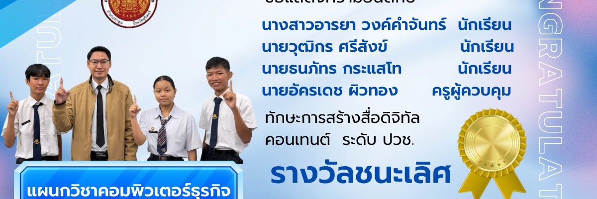 ข่าวประชาสัมพันธ์ วิทยาลัยการอาชีพท่าตูม ขอแสดงความยินดีกับ ผลิตภัณฑ์ **YES HAIR “Bamboo Hair Serum”** ที่ได้รับรางวัล **รองชนะเลิศอันดับ 3 ระดับภาค** และยังได้รับคัดเลือกเป็นตัวแทนเข้าร่วมแข่งขันในระดับชาติ ในงาน **การประกวดสิ่งประดิษฐ์ของคนรุ่นให… admin@thatum1 ธันวาคม 11, 2025