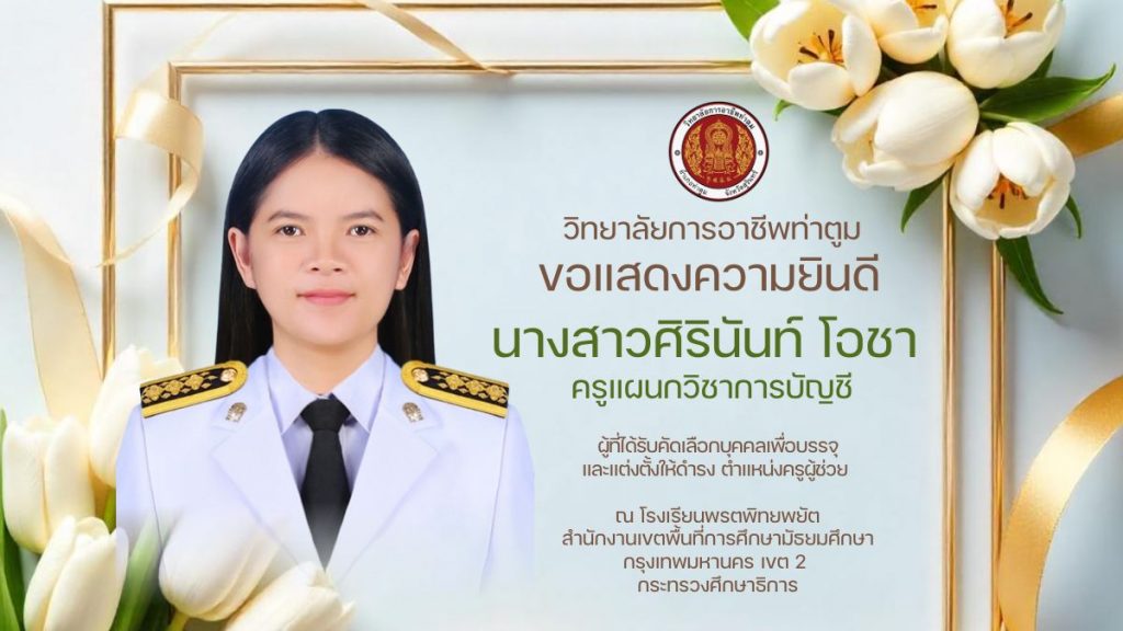 เนื่องในโอกาสได้รับการคัดเลือกให้บรรจุและแต่งตั้งให้ดำรงตำแหน่ง ครูผู้ช่วย ณ โรงเรียนพรตพิทยพยัต สำนักงานเขตพื้นที่การศึกษามัธยมศึกษากรุงเทพมหานคร เขต 2 กระทรวงศึกษาธิการ